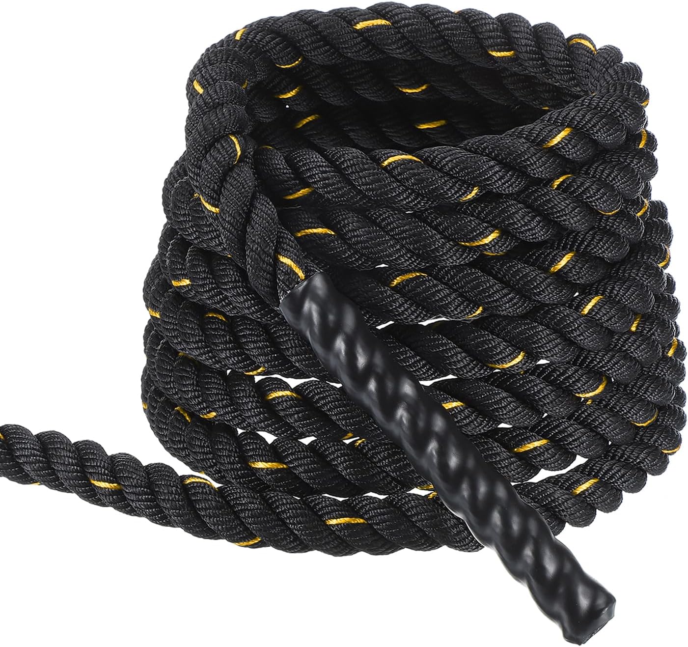 Battle Rope 20ft x 1 Inch Polyester Workout Rope Heavy Fitness Exercise Rope for Strength Training Home Gym Muscle Building, Black Yellow